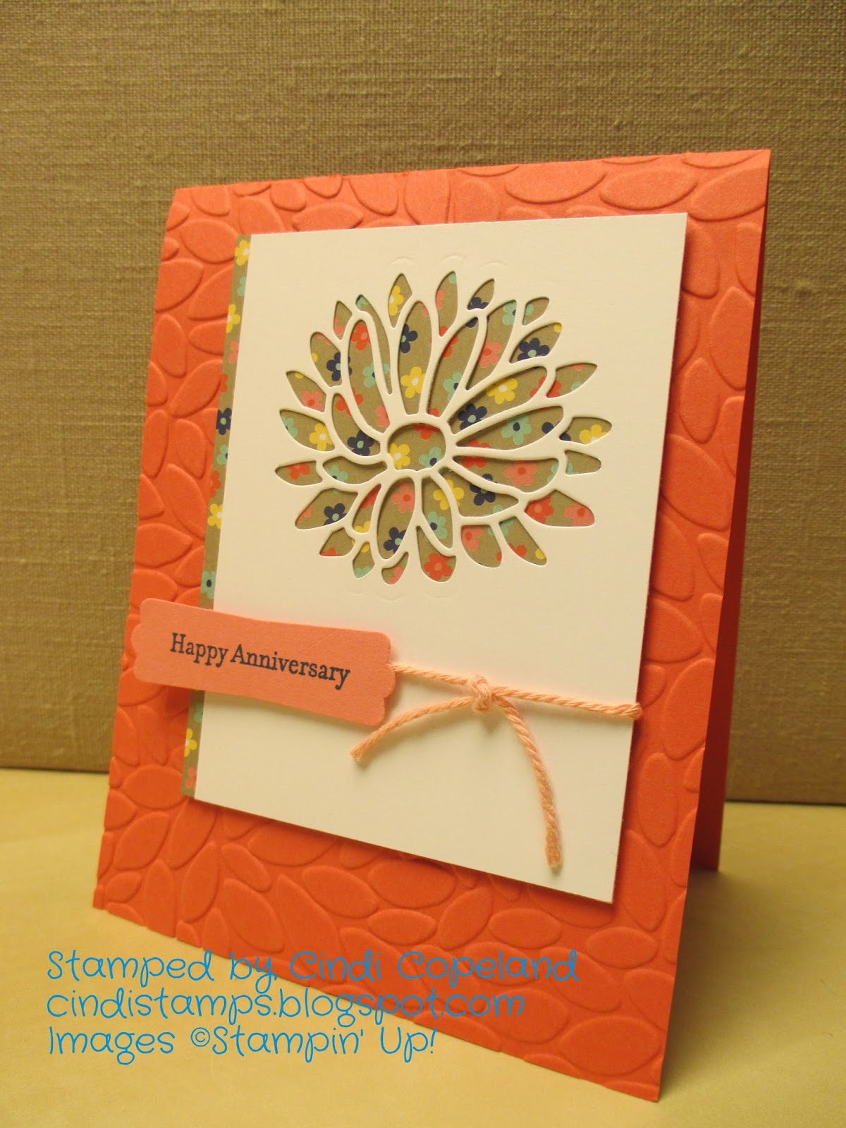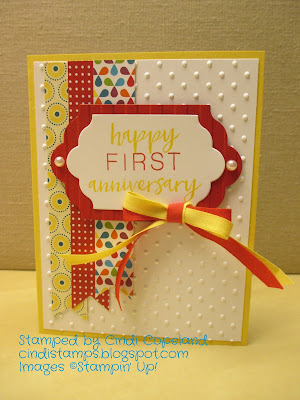 My son and daughter-in-law have their first wedding anniversary coming up, so I found this design on Pinterest and tweaked it just a bit. I have so much of this Summer Smooches DSP in my stash, I could make thousands of these cards!