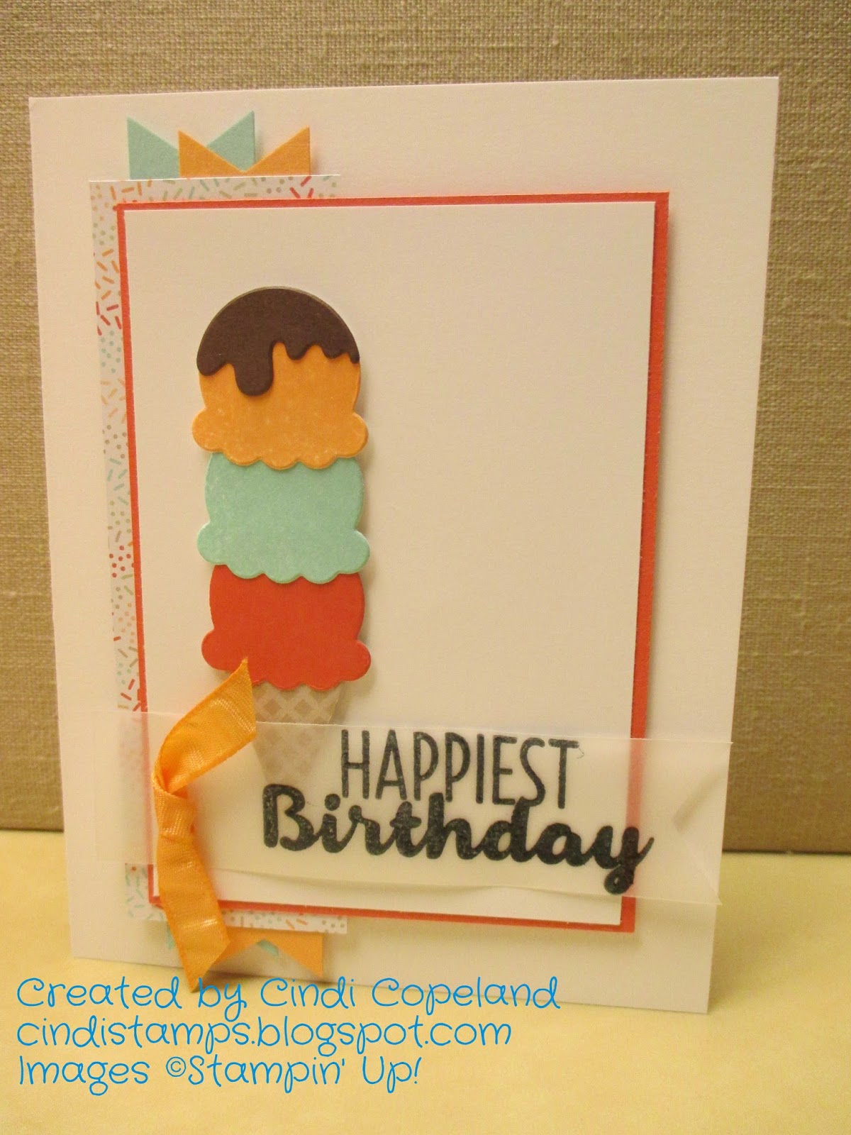 I hope you like this card - I think it's pretty cute! And our weather turned pretty warm today, so ice cream is a great idea!